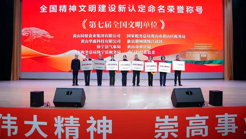 2026年1月18日下午,由中共黃山市委宣傳部主辦,歙縣縣委宣傳部協(xié)辦的“文明之光 德耀黃山”2025年黃山市精神文明建設(shè)成果交流展示活動(dòng)在歙縣舉行。會(huì)上,市政協(xié)副主席洪祖根為我公司獲評(píng)“第七屆全國(guó)文明單位”授牌。