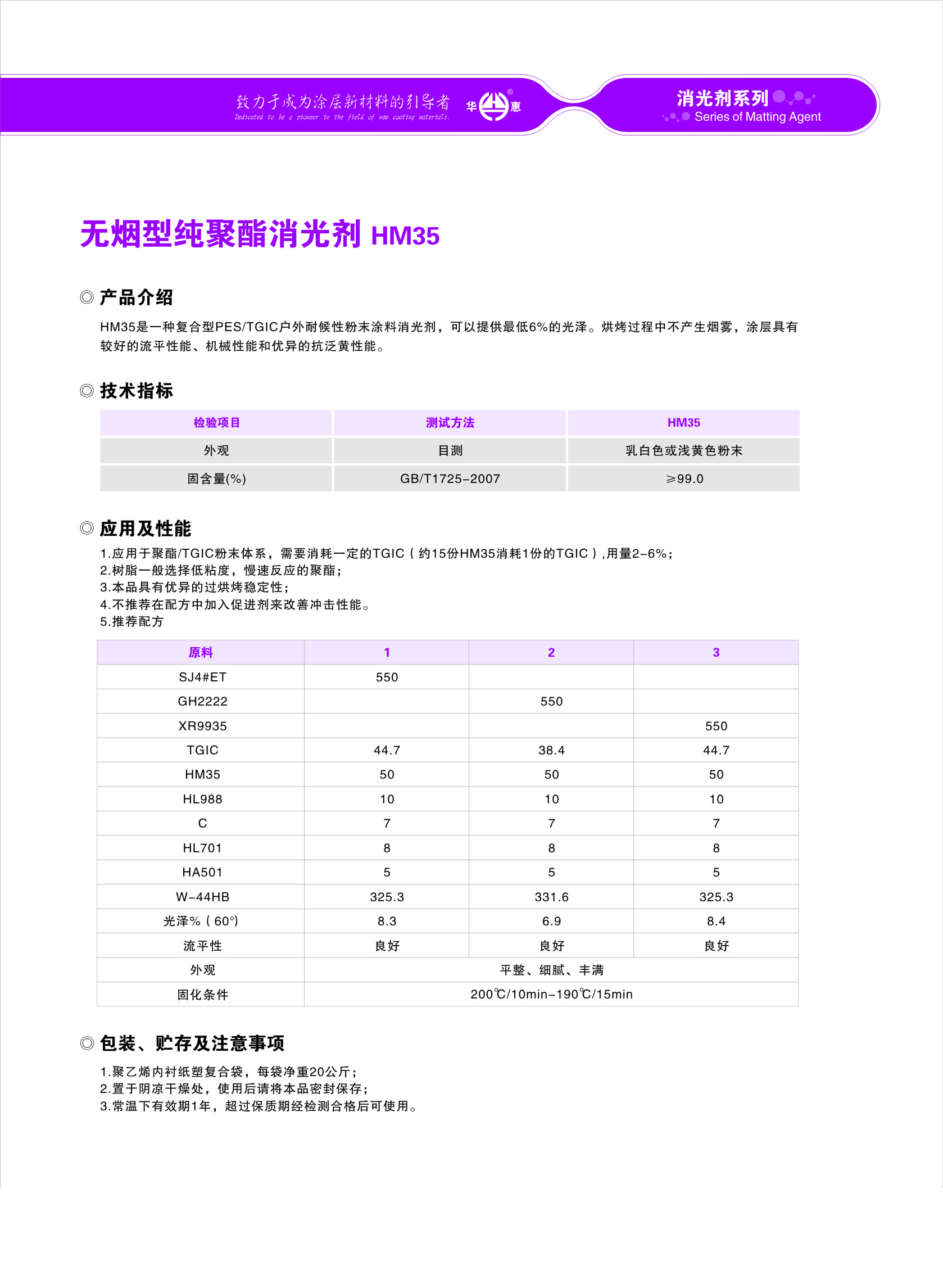 無煙型純聚酯消光劑HM35