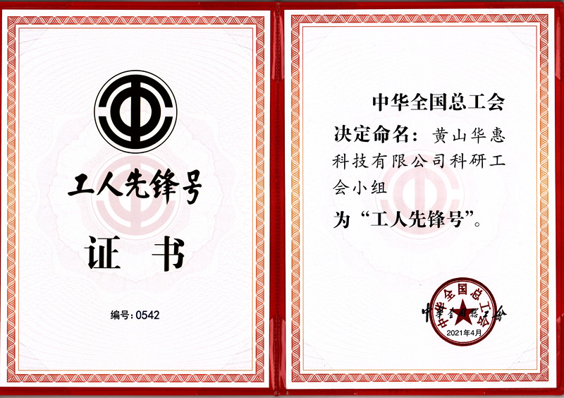 五一國際勞動(dòng)節(jié)前夕,2021年慶?!拔逡粐H勞動(dòng)節(jié)”暨“建功十四五、奮進(jìn)新征程”主題勞動(dòng)和技能競賽動(dòng)員大會(huì)在北京人民大會(huì)堂舉行,黃山華惠科技有限公司科研工會(huì)小組被中華全國總工會(huì)命名為“全國工